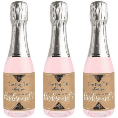 Big Dot of Happiness Rustic Kraft - Mini Wine and Champagne Bottle Label Stickers - Will You Be My Bridesmaid Gift for Women and Men - Set of 16